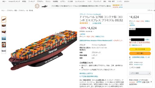 Revell 1/700 コンテナ船 コロンボ エキスプレスを購入しました ※この記事で書いていることは5/8から5/9の出来事です。 以前から気になっていたコンテナ船 コロンボ エキスプレスの在庫がAmazonで復活していて、しかも在庫数は 残り1点 という表記。 在庫が…